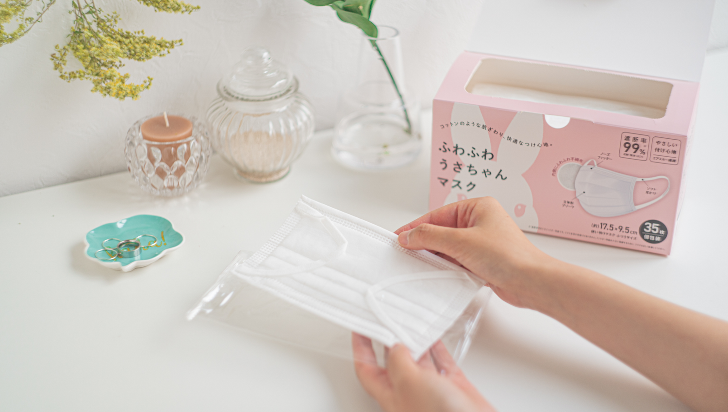 「不織布のマスクが良いことは分かってる。だけど、着けるとお肌は荒ちゃうし、ゴワゴワして気になる。」そんな敏感肌の方の声にどうにかお答えできないか。いろんな施策をくり返し、自信をもってお届けできるレベルの不織布マスクが出来ました。