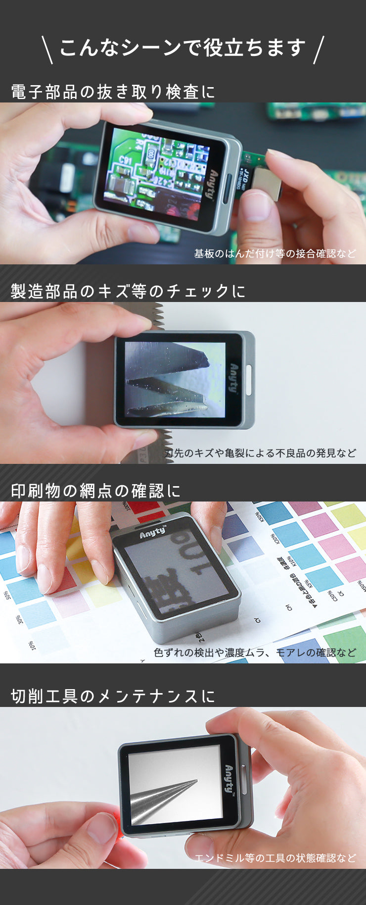 - 暗い場所でも確認できるLEDライトで細かな部分を確認