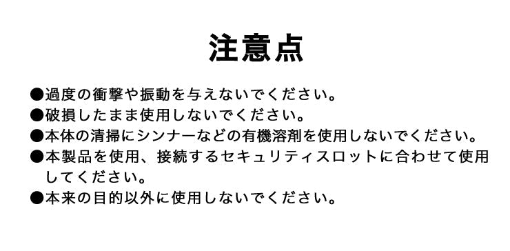 - ワイヤーを机の脚や柱などに巻きつけ、セキュリティスロットに差し込んでロック