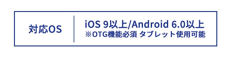 iOS 9以上、Android 6.0以上※OTG機能必須 タブレット使用可能