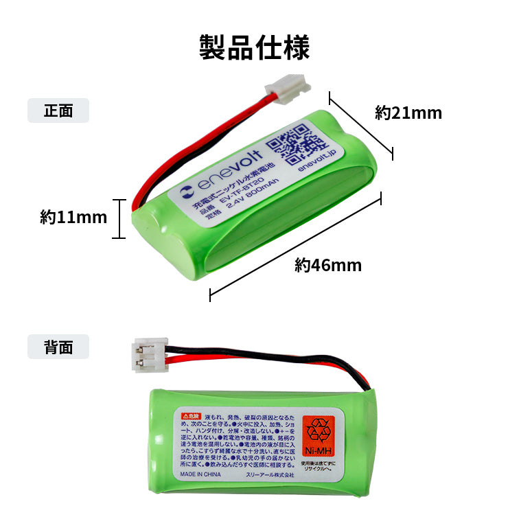 家庭用電話機、コードレス電話子機、ワイヤレスモニター子機のバッテリー交換に 互換バッテリー 互換電池