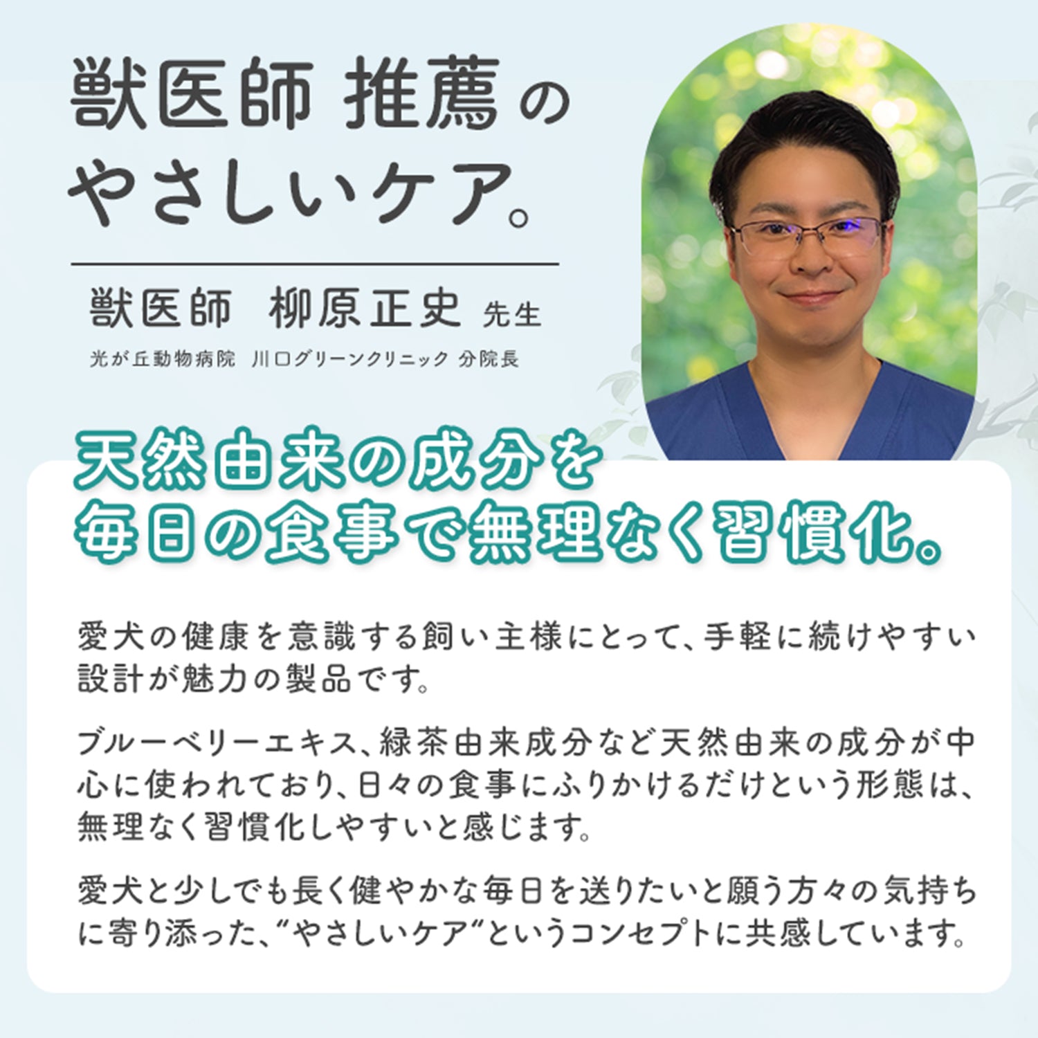 - 獣医師も推薦する「やさしいケア」。犬の管理栄養士が監修した、天然由来の厳選素材のみを使用した【日本製サプリメント】