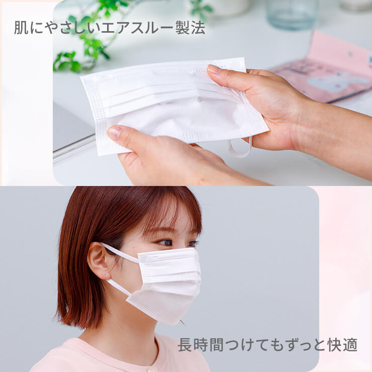 敏感肌で不織布マスクは擦れて痛い…でも感染症対策はしっかりしたい!そんなあなたにおすすめ"ふわふわ柔らか"な使い捨てマスクの登場です。エアスルー不織布を使用することでコットンのようなやわらかさ、肌触りを実現。もちろん花粉・微粒子も3層構造フィルターでしっかりカット。
